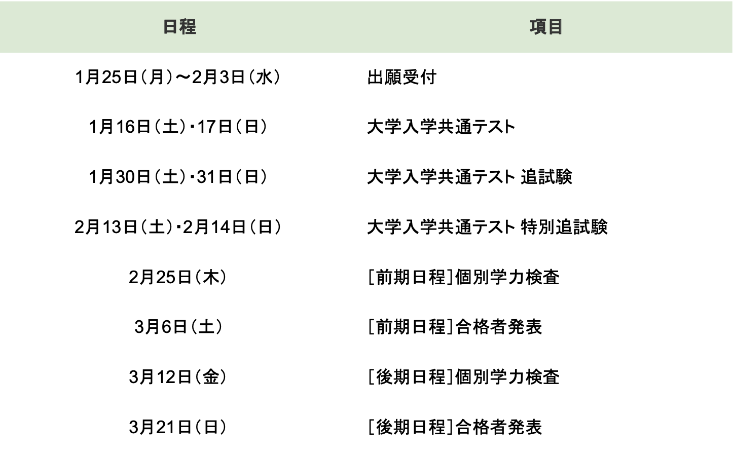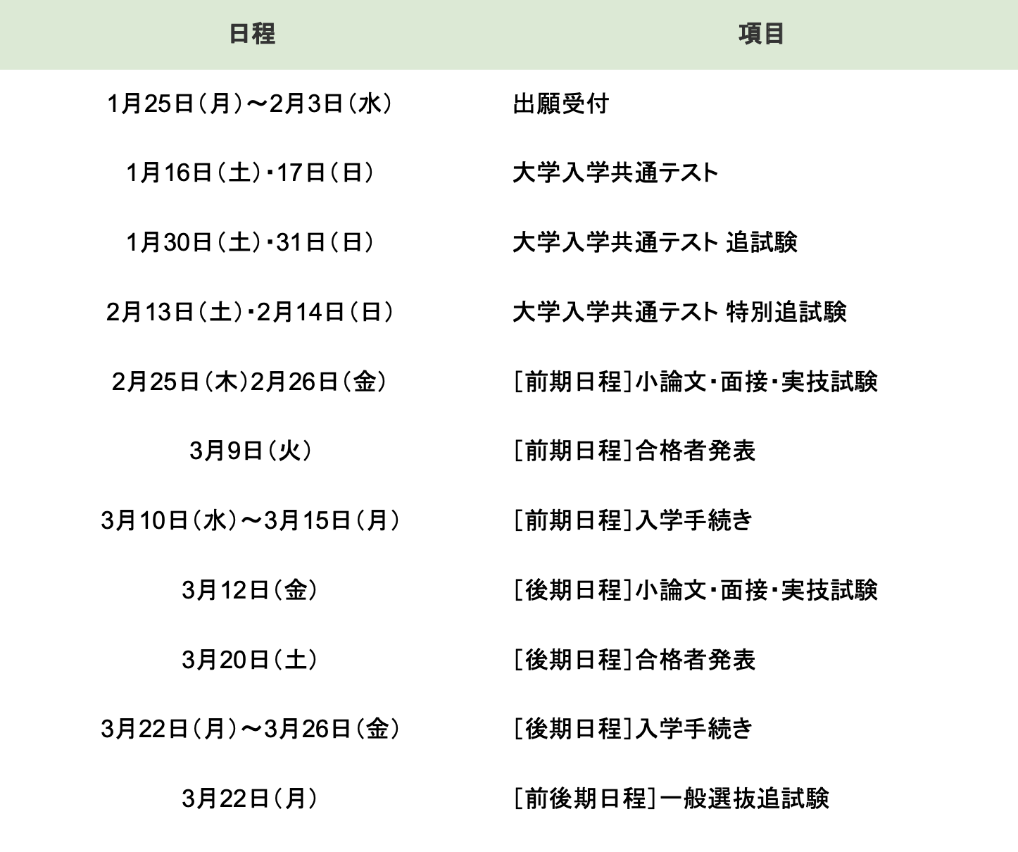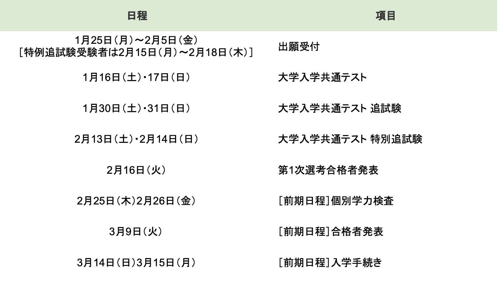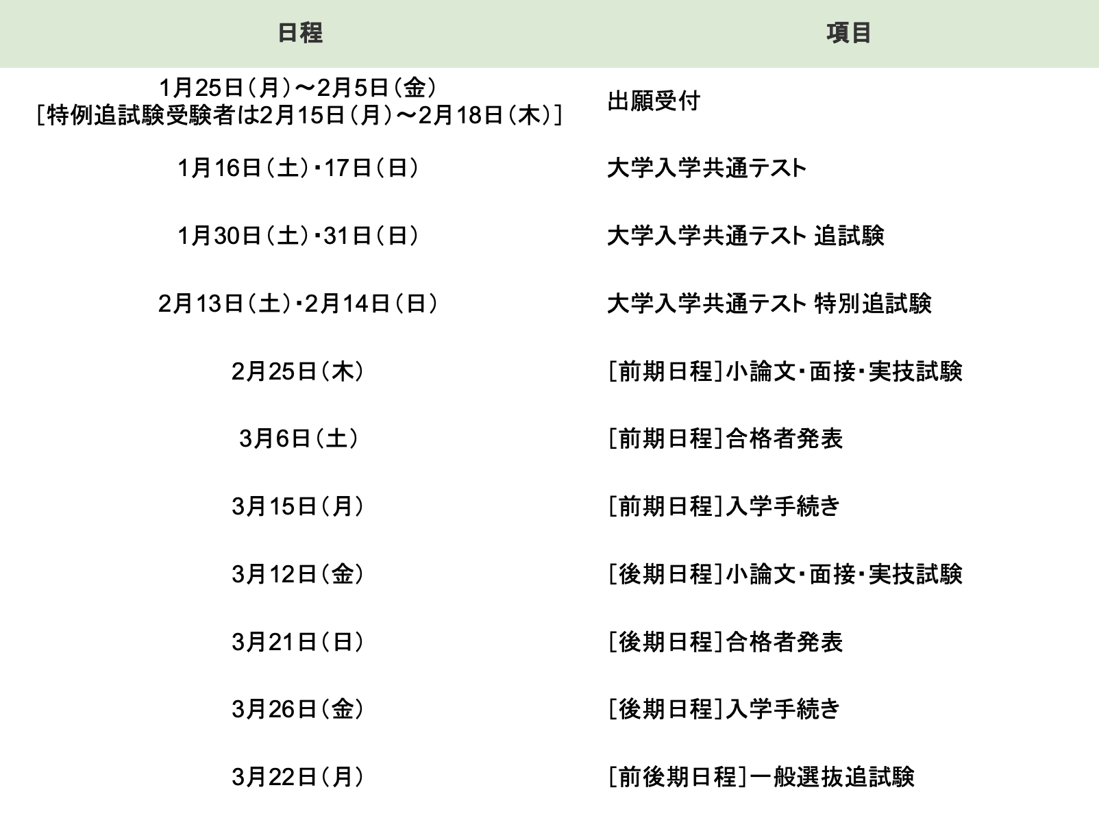 ※令和3年度大学入学共通テストの特例追試験(令和3年2月13日(土),14日(日))の受験者については,出願期間等を別途定める予定。詳細は,入学者募集要項(11月中旬発行予定)を参照。