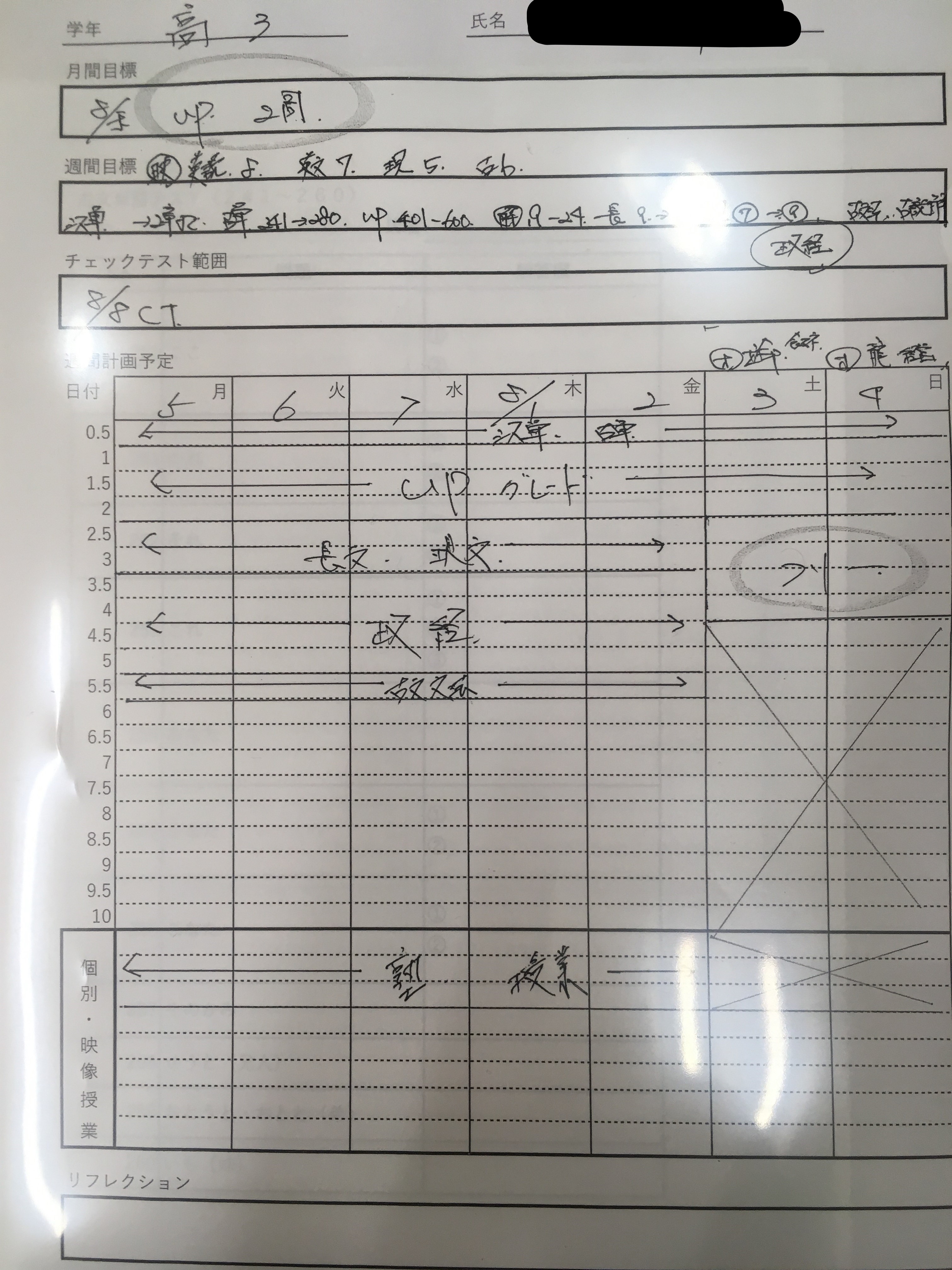 (生徒の週間学習計画表)