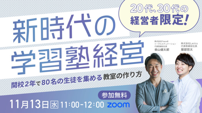 【受付終了】20代、30代の経営者限定!新時代の学習塾経営~...