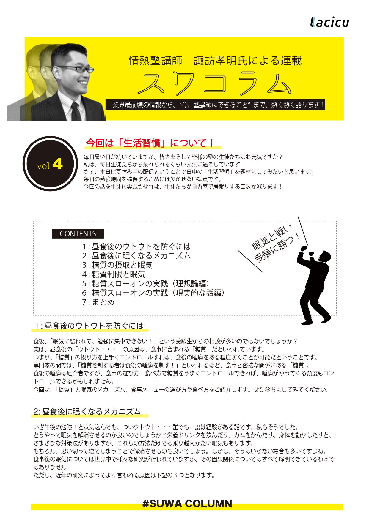 自習室で居眠りがなくなる!? スワコラム(東大卒 諏訪孝明の連載)