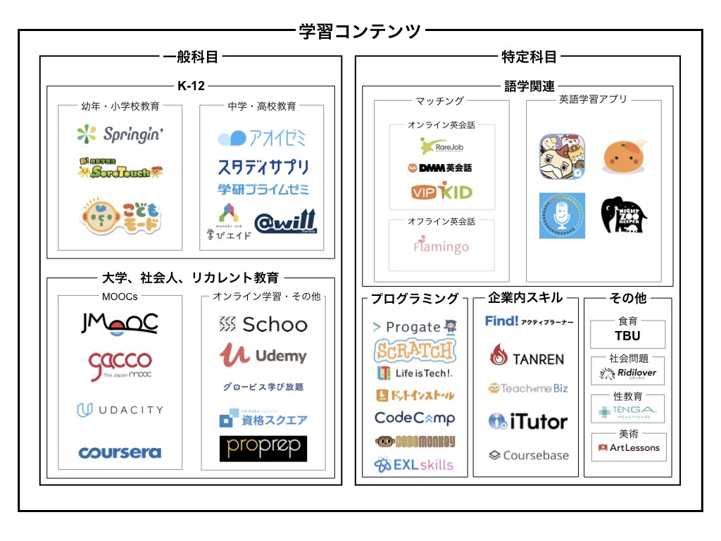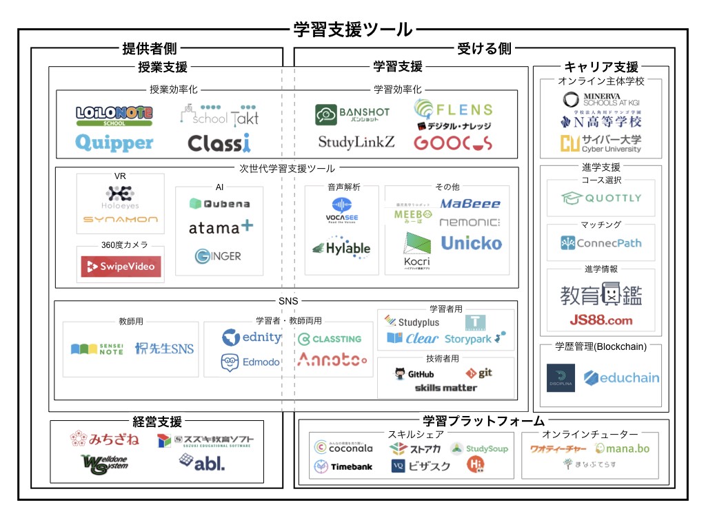 上記が日本のEdtechのカオスマップです。
