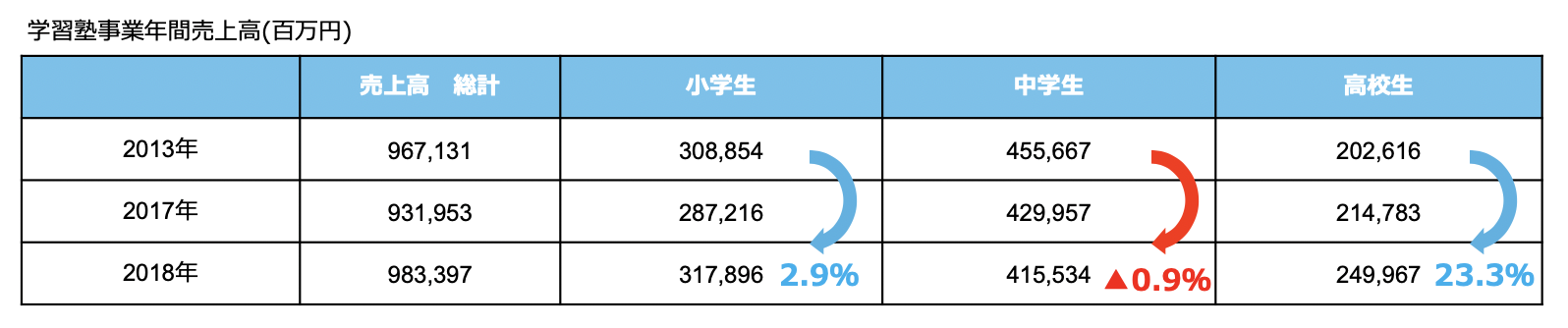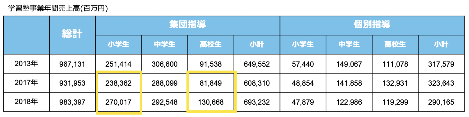 この中でも高校生の市場は差別化しやすく伸び率が高いです。