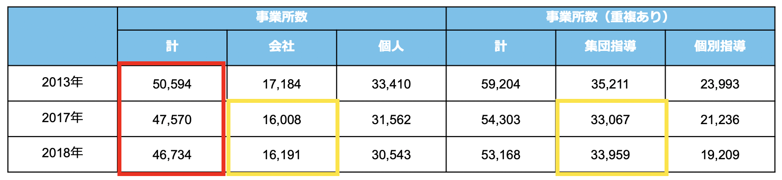 集団指導が増えている理由については、後ほど考察していきます。