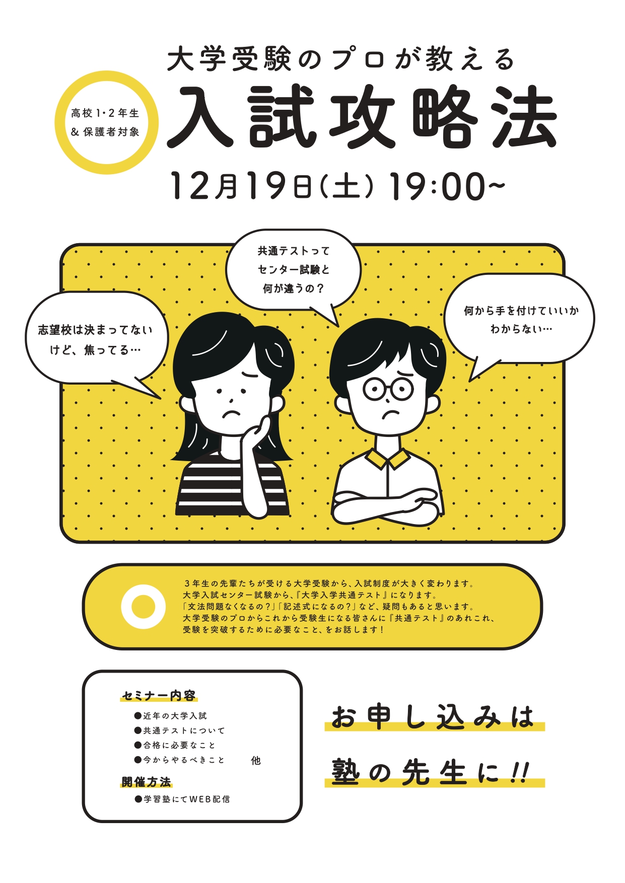 高1・2年生&保護者向けのWEBセミナーを開催いたします!