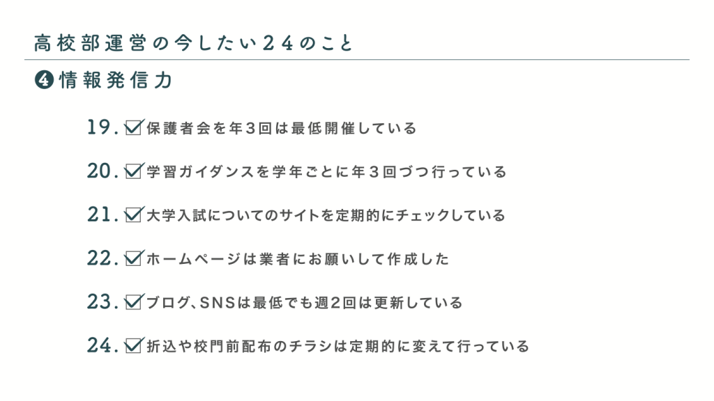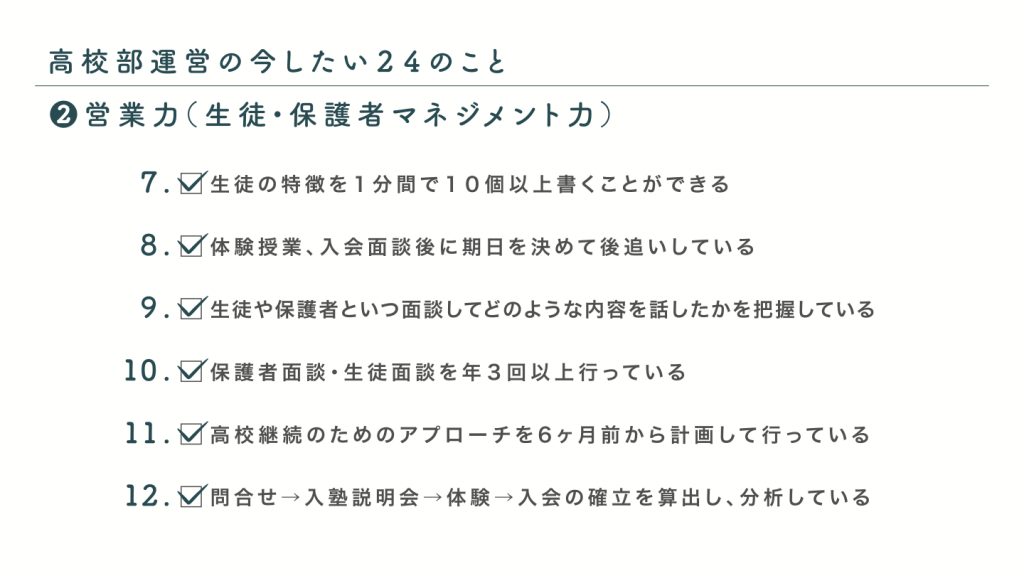 学習塾運営者向けに毎月行っている『NEWSL ON AIR』12月のテーマは、「高校部運営の今したい24のこと」と題し、今年の振り返りと来年度に向けてのやるべきことを具体化する対談をお送りします。