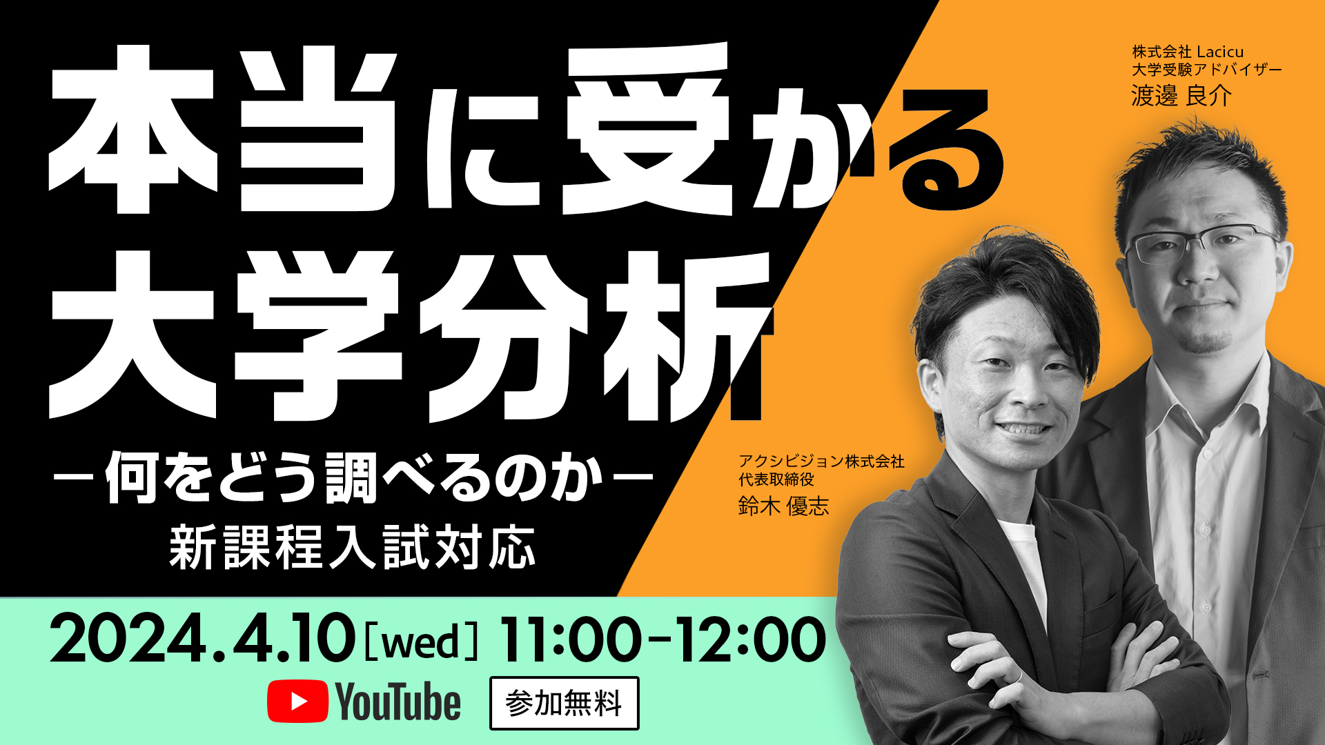 2024年4月10日(水)に『本当に受かる大学分析~何をどう調べるのか~』を開催しました。