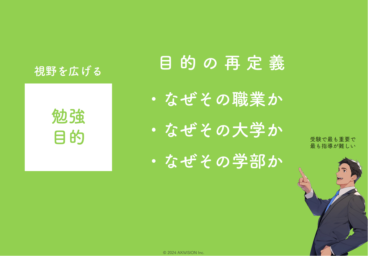 なぜその職業なのか、なぜその大学なのか、なぜその学部なのかを、しっかりと生徒自身に認識させていきます。