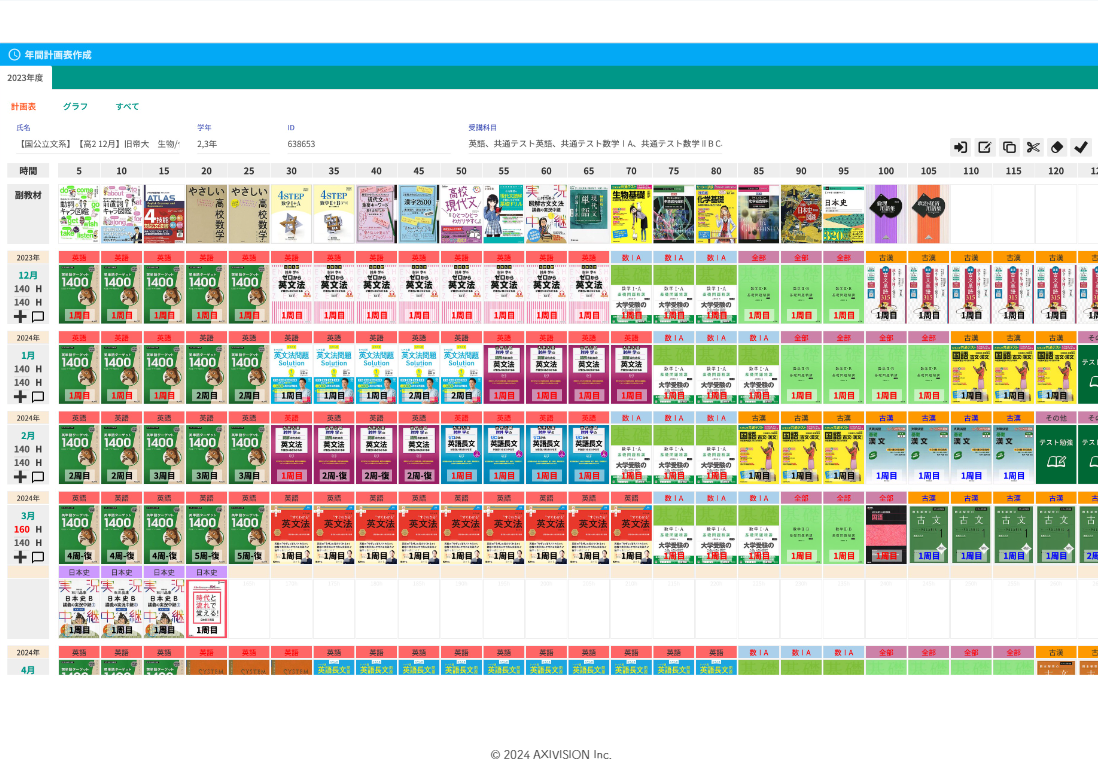 生徒の学力、志望校に合わせた完全個別の「年間計画表」を使い、