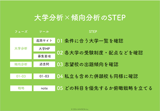分析は、主に「大学分析」と「傾向分析」の二つに分けられます。