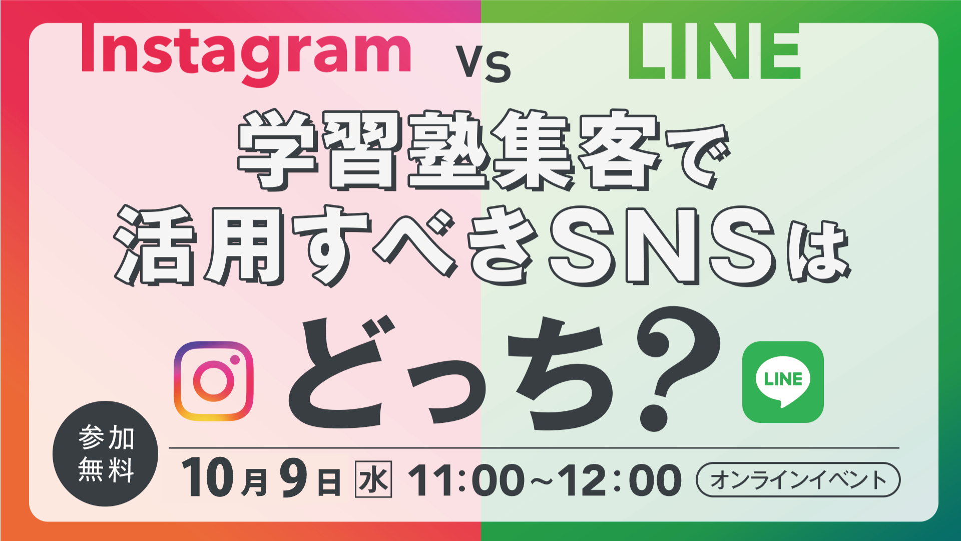 ※本セミナーは、2024年7月10日(水)に開催した「Instagram VS LINE 学習塾集客で活用すべきSNSはどっち?」のアーカイブ配信です。