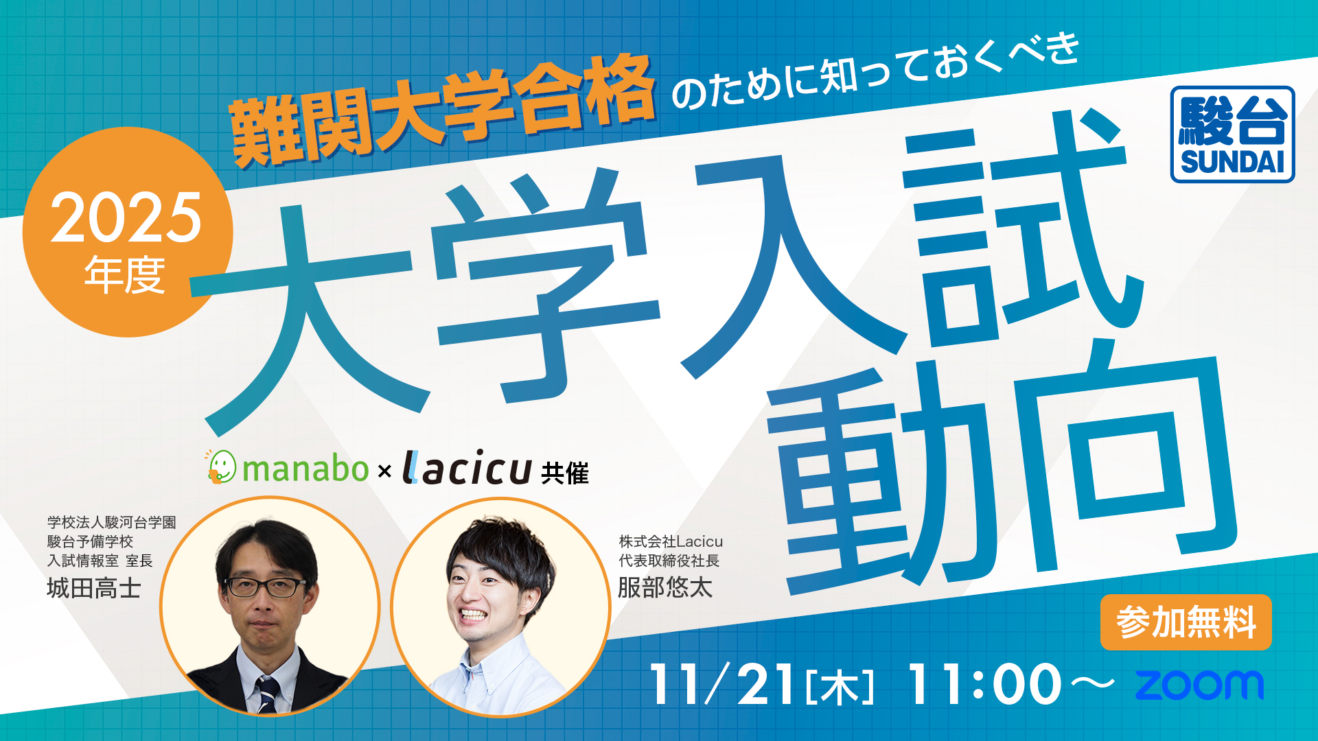 駿台予備学校入試情報室室長の城田様をお招きして、「2025年度大学入試動向」をお届けします。