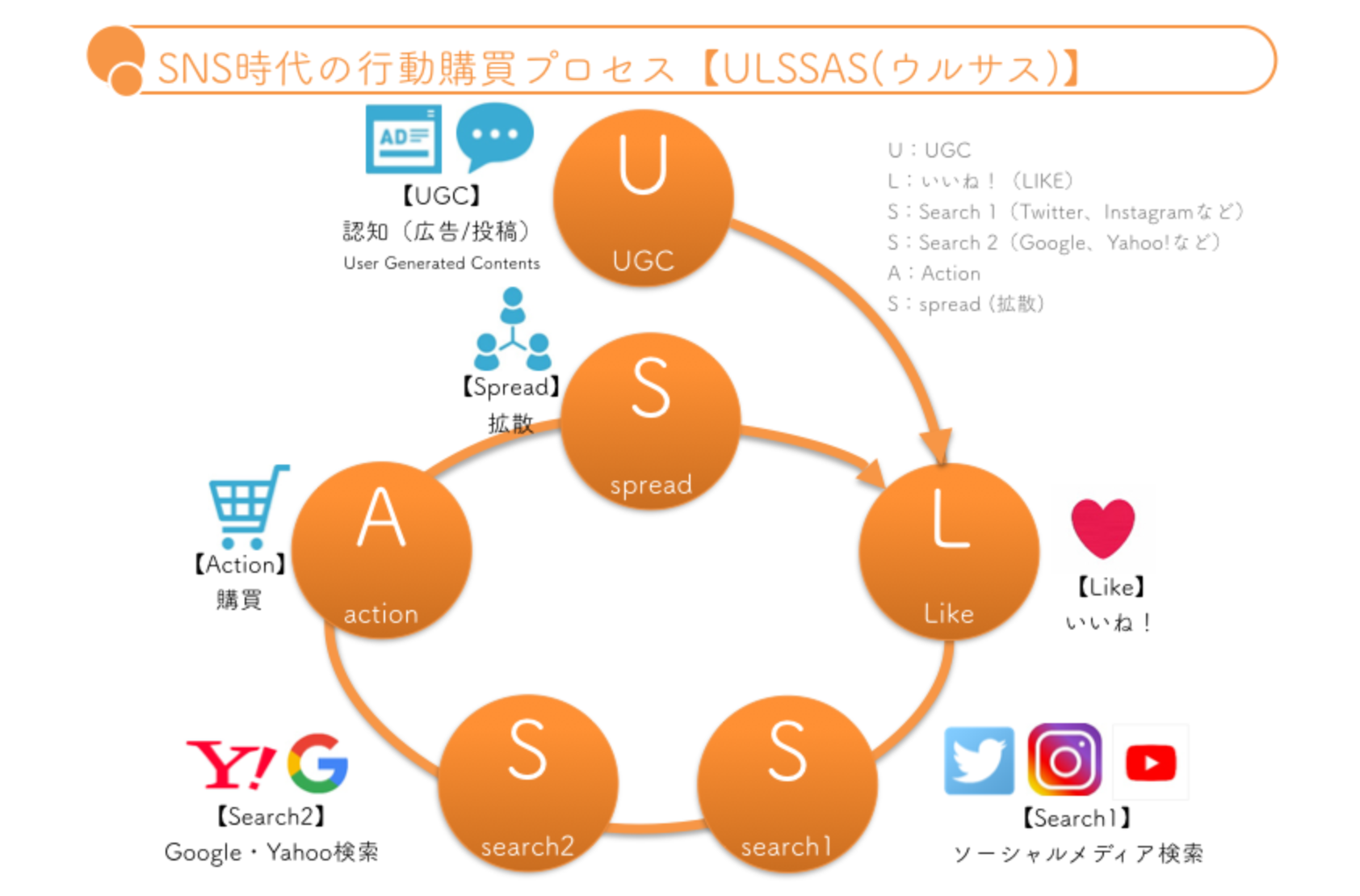 SNSが台頭したことで新たに生まれた購買プロセスを「ULSSAS(ウルサス)」といいます。