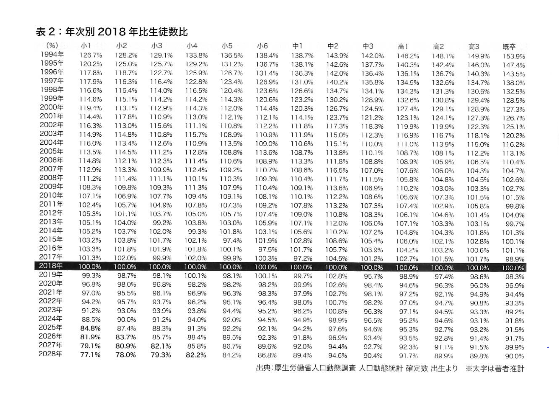 こう見ると、少子化が塾経営に与えるインパクトを実感せざるを得ません。