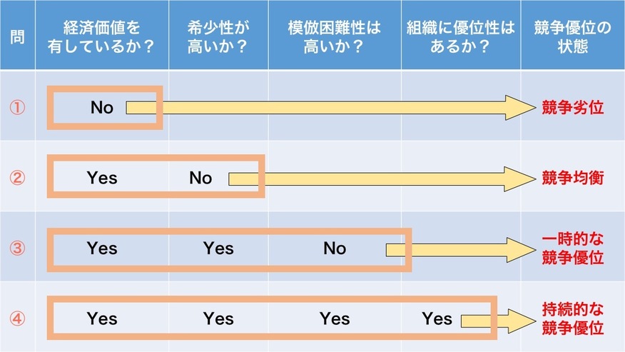 企業の有する経営資源が、「経済的な価値がある」とみなされているかを分析する要素です。