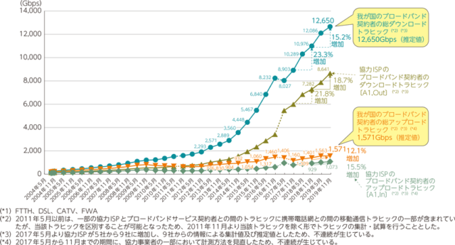 (引用:我が国のインターネットにおけるトラヒックの集計結果|総務省)