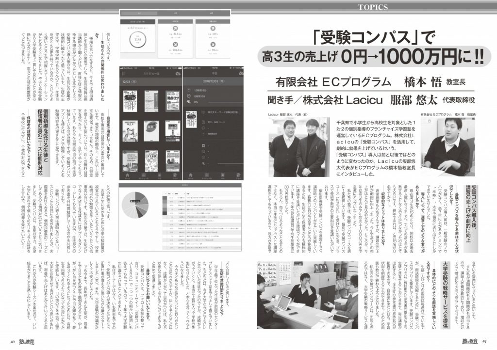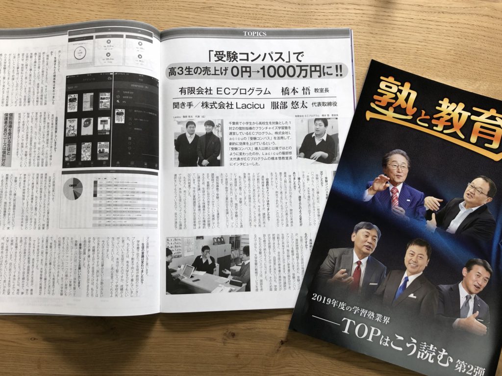 個別指導のフランチャイズ学習塾を運営しているECプログラムの受験コンパスの使用事例が塾と教育1月号に掲載されました。