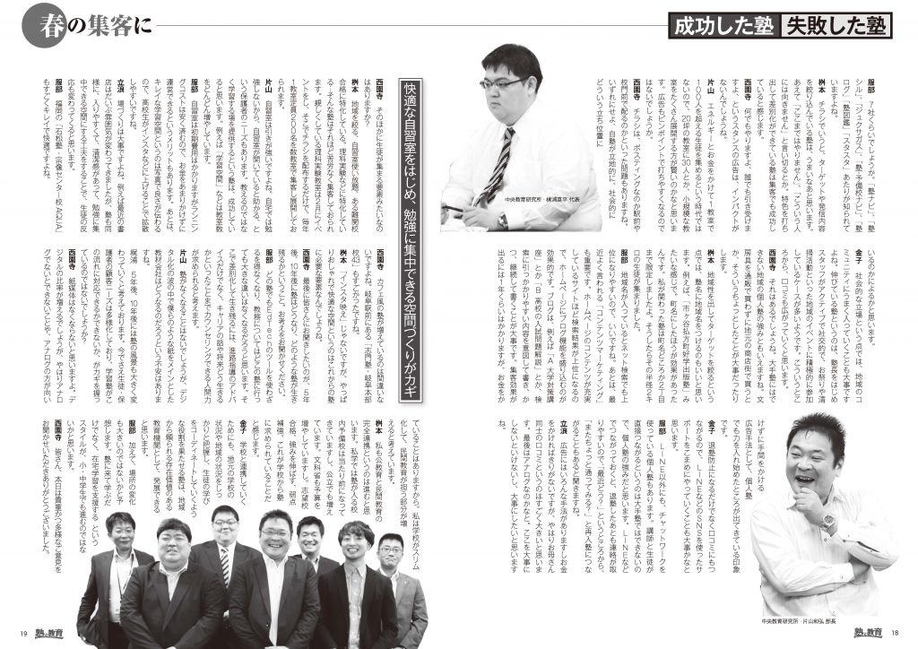 塾と教育7月号の『春の集客に成功した塾、失敗した塾』にて、弊社代表のインタビューが掲載されました。