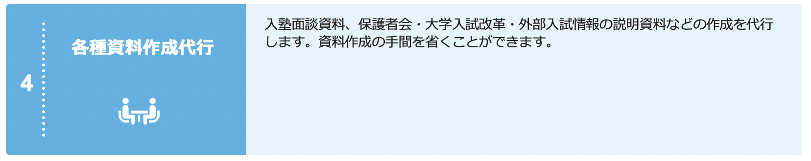 大学入試改革、外部入試情報など保護者会や、面談に必要な資料を提供いたします。
