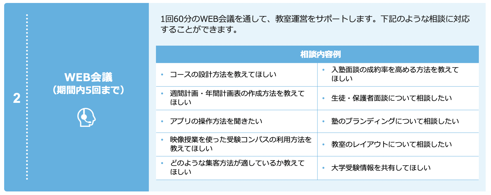 高校部の教室運営に必要なことを、なんでも相談対応します。