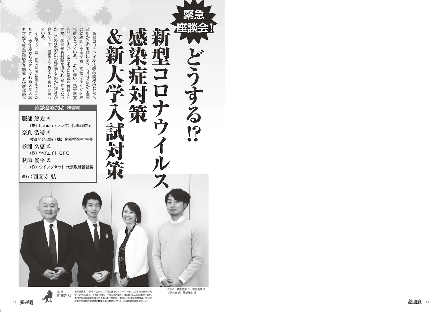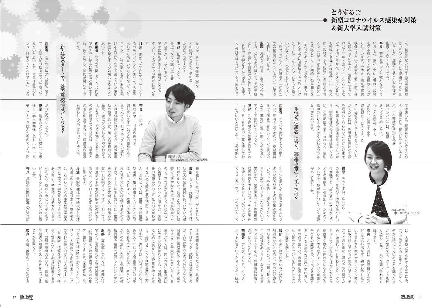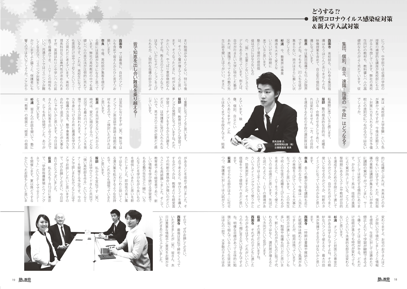 塾と教育4月号に新型コロナウイルス感染症対策&新大学入試対策について取材を頂きました。