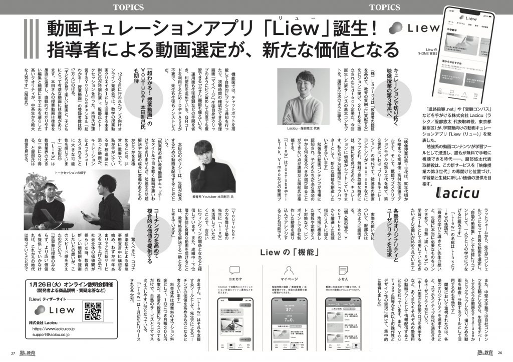 塾と教育1月号に弊社サービス『Liew(リュー)』が掲載されました。