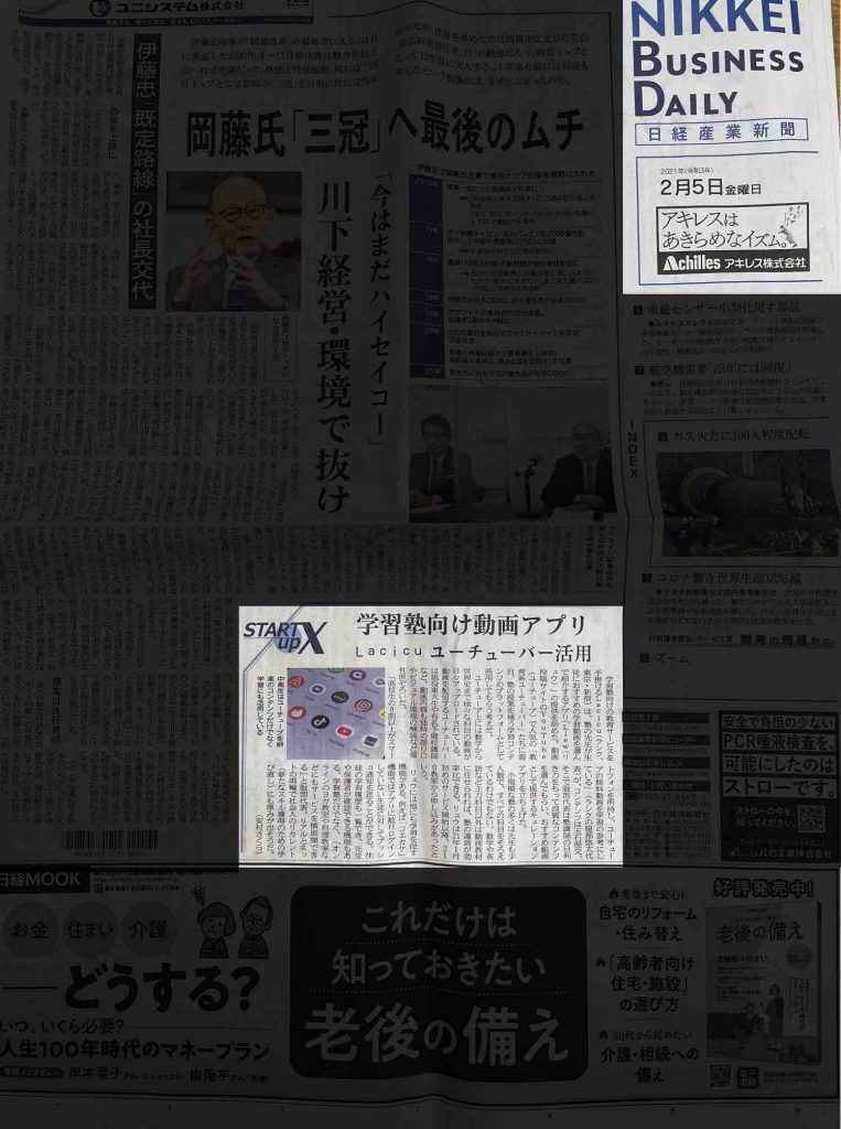 1月6日にローンチをした映像授業の第3世代「Liew」を日経産業新聞の一面に掲載していただきました!
