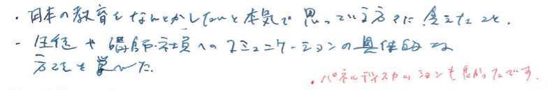 主催したわれわれも実感しているのですが、参加者のみなさまや講師の方には、真剣に塾経営に取り組んでる方が多いです。ほかの経営者の方が、なぜ独立したのかという話を聞くのも大変興味深いです。熱い経営者の方と話していると、こちらまで仕事に燃えてきます!