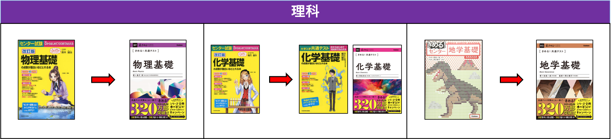 受験コンパスにおいて、センター試験用の参考書がルートに組み込まれているのは、理科と社会になります。
