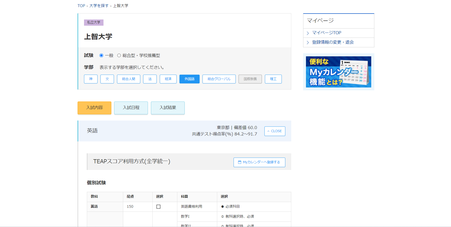 全国すべての大学の学部・学科・試験方式を網羅しており、大手予備校にも負けないデータベースを簡単に手に入れることができます。