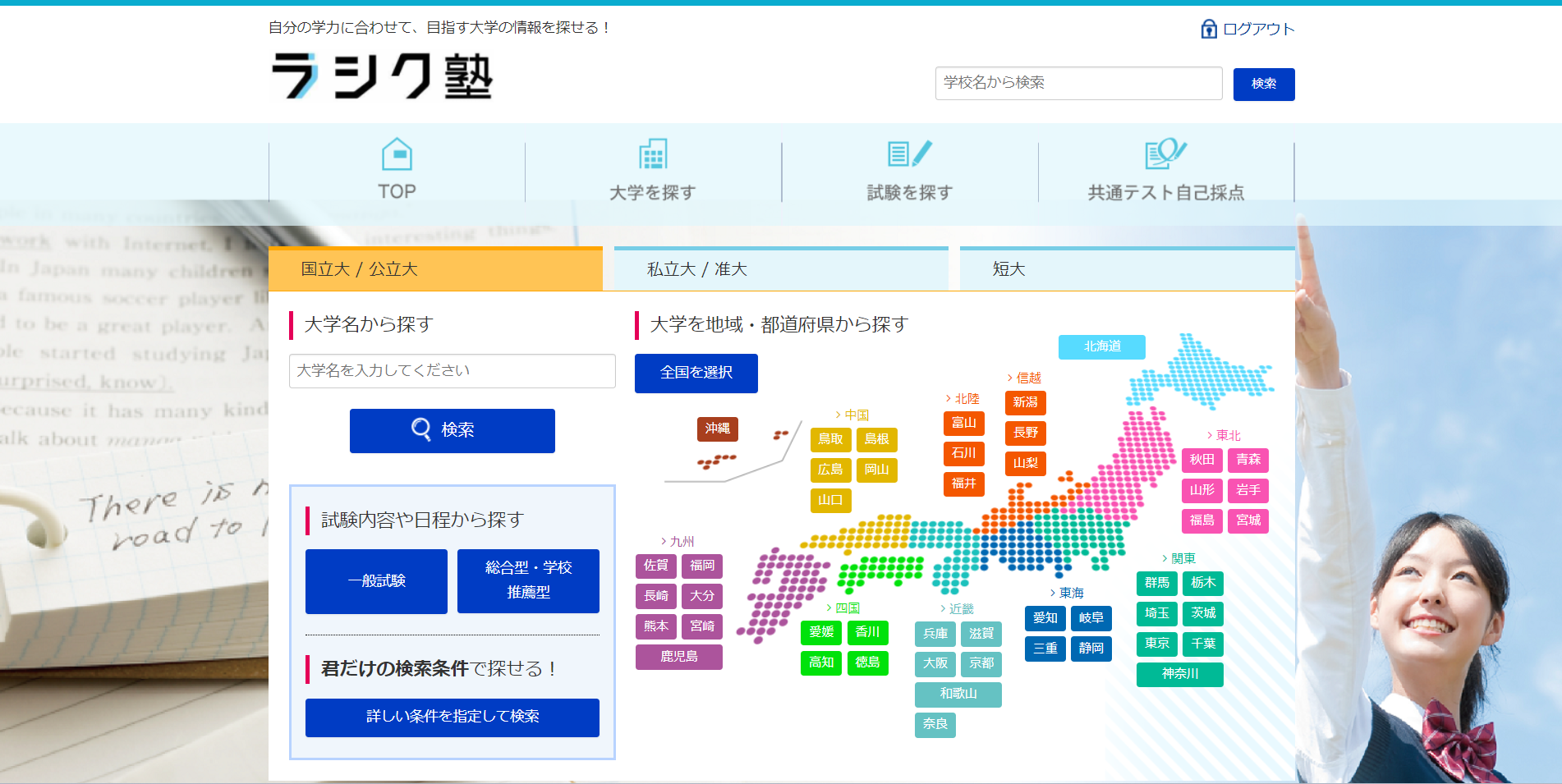 進路指導.netは、自塾ブランドの大学受験情報サイトを簡単に作成できるサービスです。